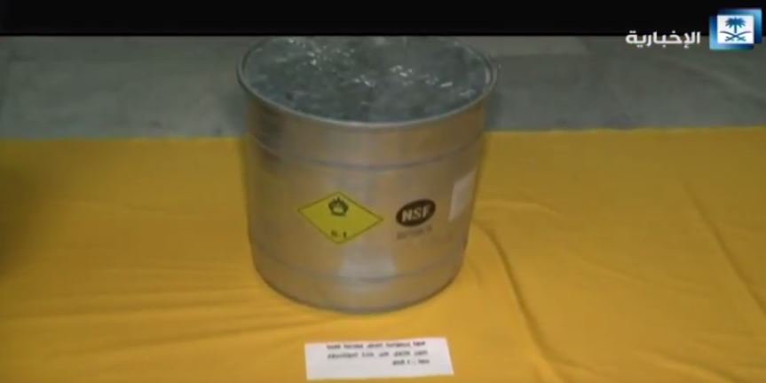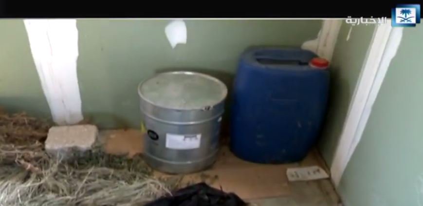 عثرت وزارة الداخلية على (130) جالوناً من مادة الأسيد الحارقة، وكمية من مادة تستخدم في تصنيع المواد المتفجرة، وجالون من مادة البوتاسيوم، وثلاثة مخازن لسلاح رشاش، وواحد وسبعين طلقة حية، وقناع أسود اللون في عملية مداهمة وكر خلية إرهابية أمس في العوامية.