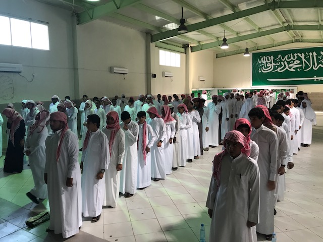 استقبلت مدرسة عيبان الثانوية هذا اليوم الأحد الموافق26 / 12 / 1438 طلابها المنتظمين والمستجدين في أجواء تربوية تعمها البهجة والسرور ، حيث ألقى مدير المدرسة في الطابور الصباحي الاستاذ / عيسى الفيفي كلمه رحب فيها بالطلاب المنتظمين وحثهم على الجد والمثابرة ومواصلة التألق من اجل تحقيق النجاح ، يليها كلمه رحب فيها بالطلاب والمعلمين الجدد لهذا العام مع شرح مبسط عن نظام المدرسة