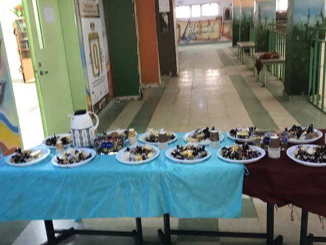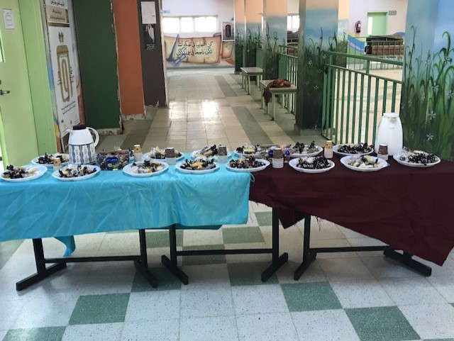 واستقبلت المدرسة طلابها مع بداية اليوم الدراسي الجديد بضيافة القهوى والحلويات ثم قام مدير المدرسة بعمل اجتماع مع المعلمين من اجل الترحيب بالمعلمين الجدد ورسم خطة العام الدراسي الجديد وتوزيع المهام
