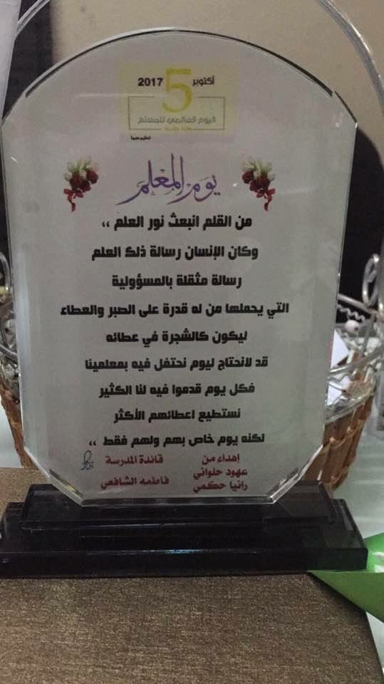 وعرفان لمعلمات المدرسة وجهودهن في سبيل الحركة التعليمية وفي الختام توجهت قائدة المدرسة بتكريم معلماتها بهذه المناسبة