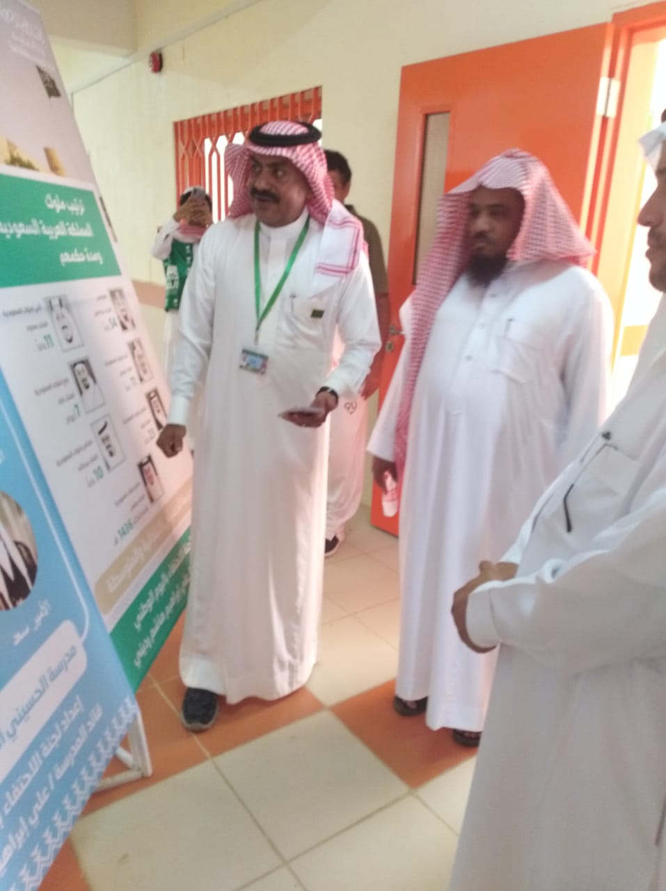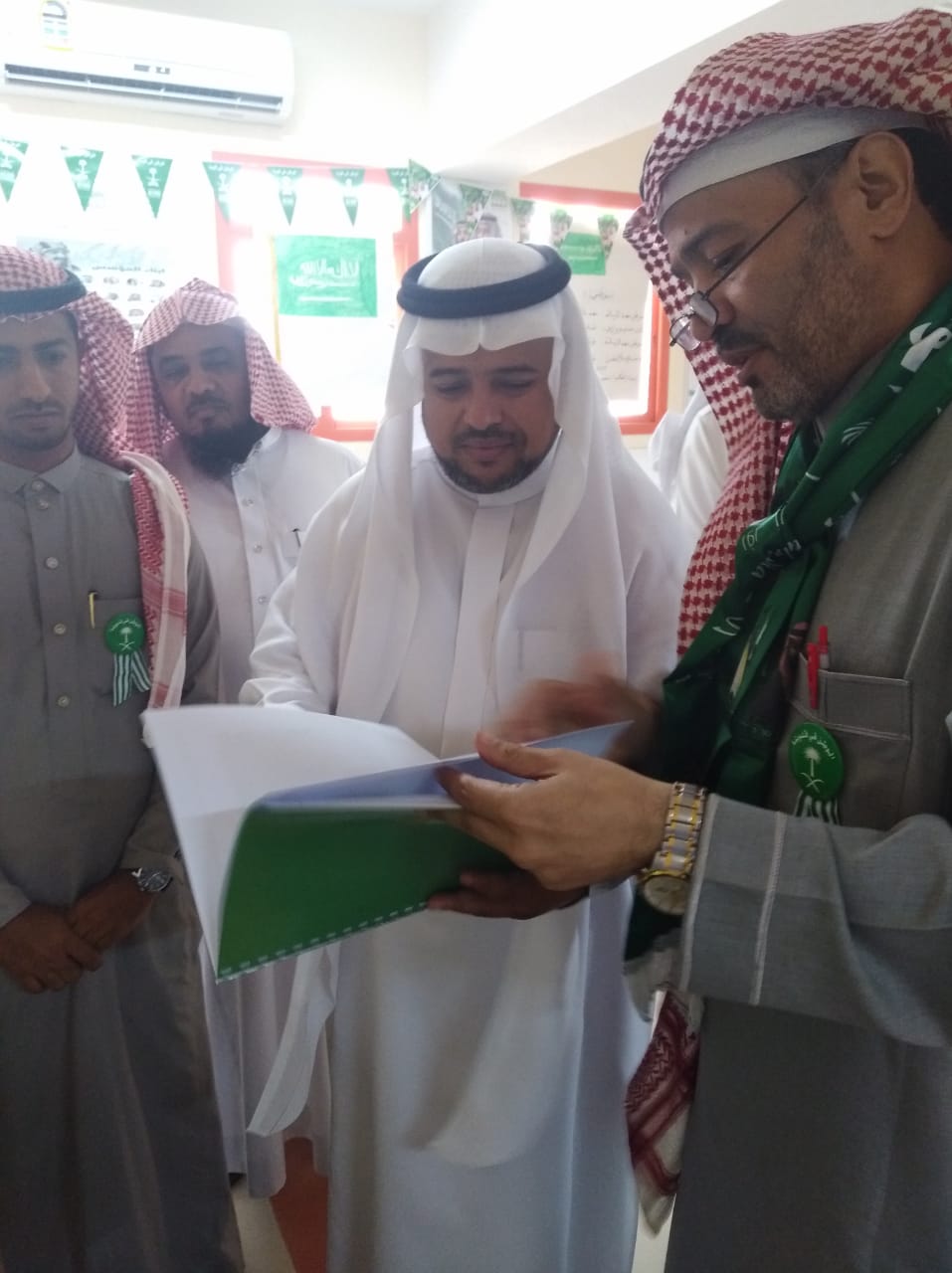 سعادة وكيل مدير مكتب صبيا الأستاذ منصور خواجي و الاستاذ يحي جماح يفتتح يوم الخميس المعرض الفني المصاحب لاحتفالات مدرسة الحسيني الابتدائية و المتوسطة باليوم الوطني ٨٩
